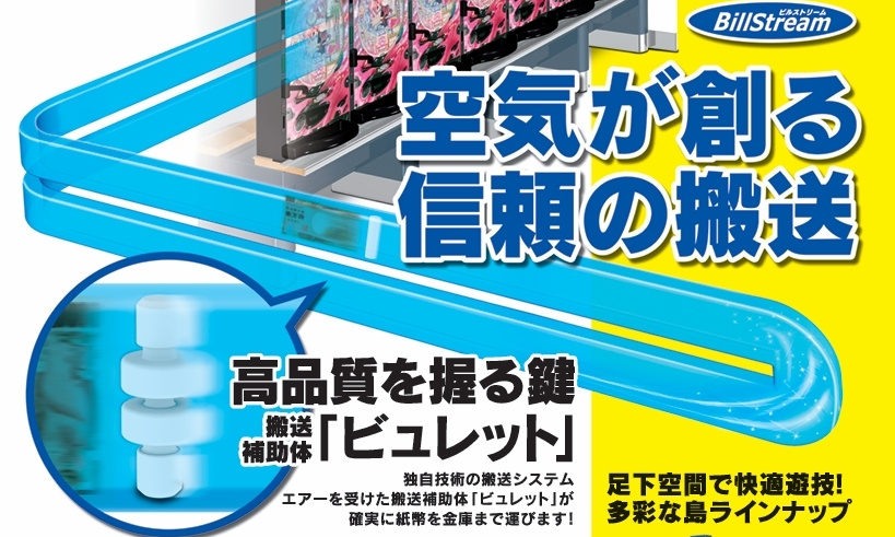 紙幣搬送装置[エース電研製]空気の力を活かしたあらゆる島形状に対応できるエアー搬送装置「BS搬送」